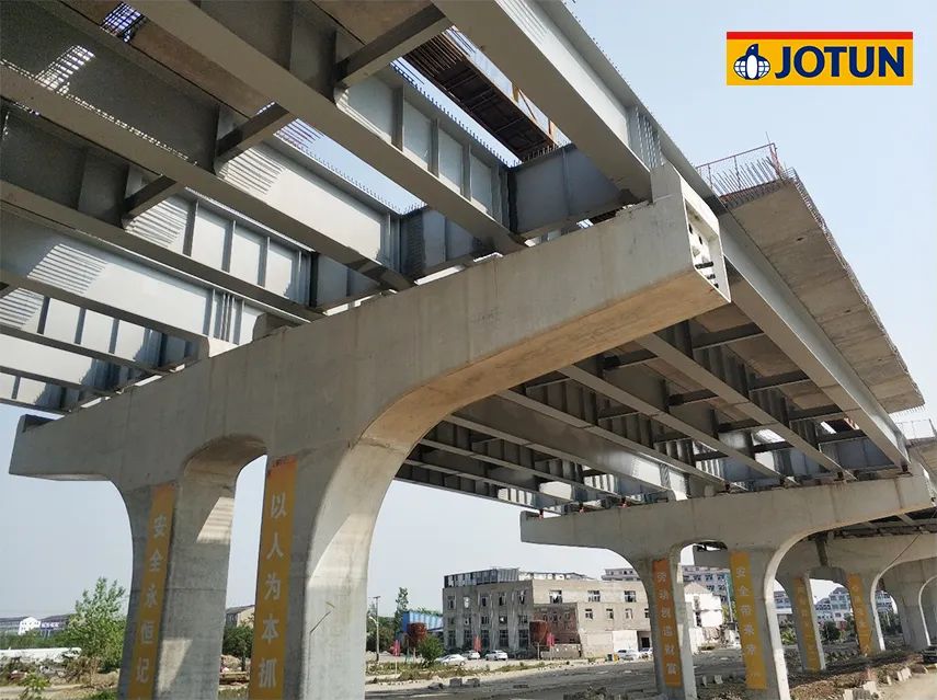 浙江臺州路澤太高架快速路項目橋梁為鋼板組合結(jié)構(gòu),全長17.5公里,全線鋼板梁共計4,200余片,是目前國內(nèi)最長的鋼結(jié)構(gòu)高架橋梁公路,是臺州人民期待已久的民生大通道項目。佐敦高固含品質(zhì)氟碳產(chǎn)品為此項目提供保護,共約50萬平米涂裝面積。