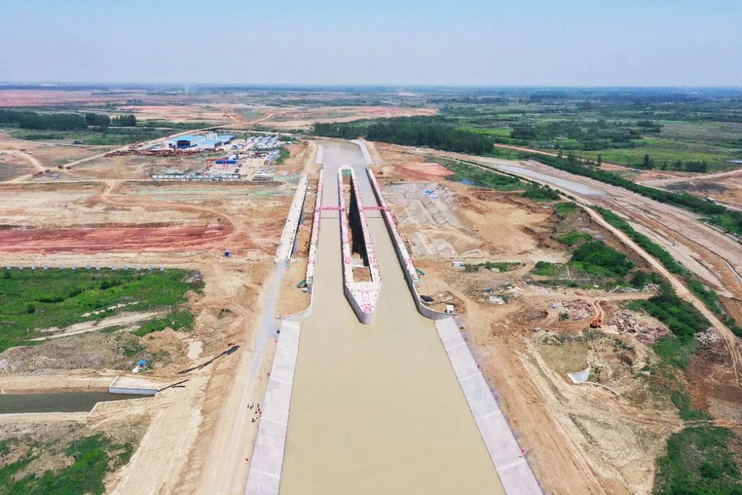 引江濟淮重難點工程-淠河總干渠鋼渡槽采用68米+110米+68米的三跨鋼結(jié)構(gòu)桁架式梁拱組合設(shè)計,主跨跨度達到110米,是目前世界上跨度最大的通水通航鋼結(jié)構(gòu)渡槽。2021年5月1日隨著淠河總干渠水緩緩流進引江濟淮淠河總干渠渡槽,標(biāo)志著這個世界超級“水橋”正式通水并具備通航條件。